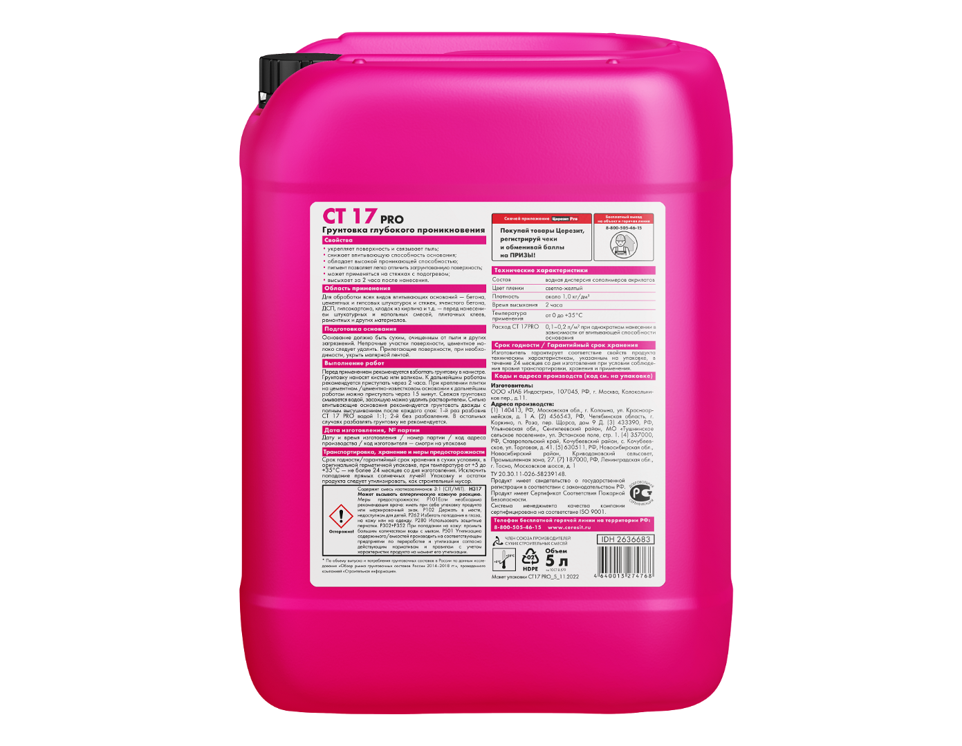 Описание товара: "Грунтовка Ceresit СТ PRO 17 (5 л)"